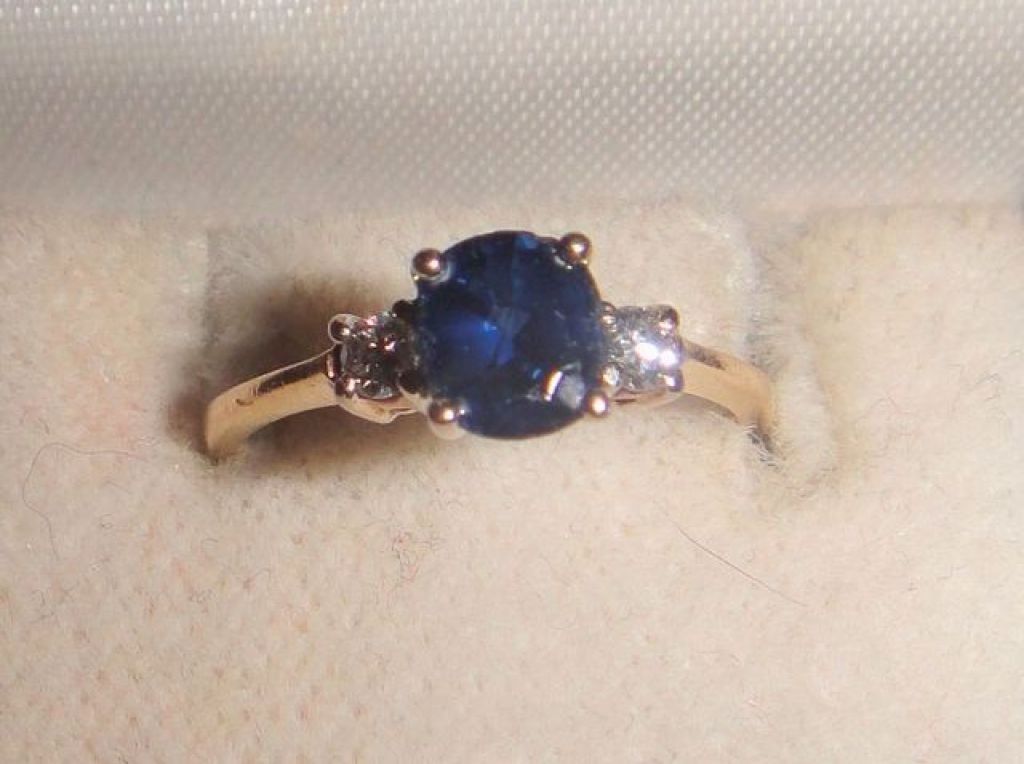 One stamped 14KT yellow gold lady's cast sapphire and diamond ring