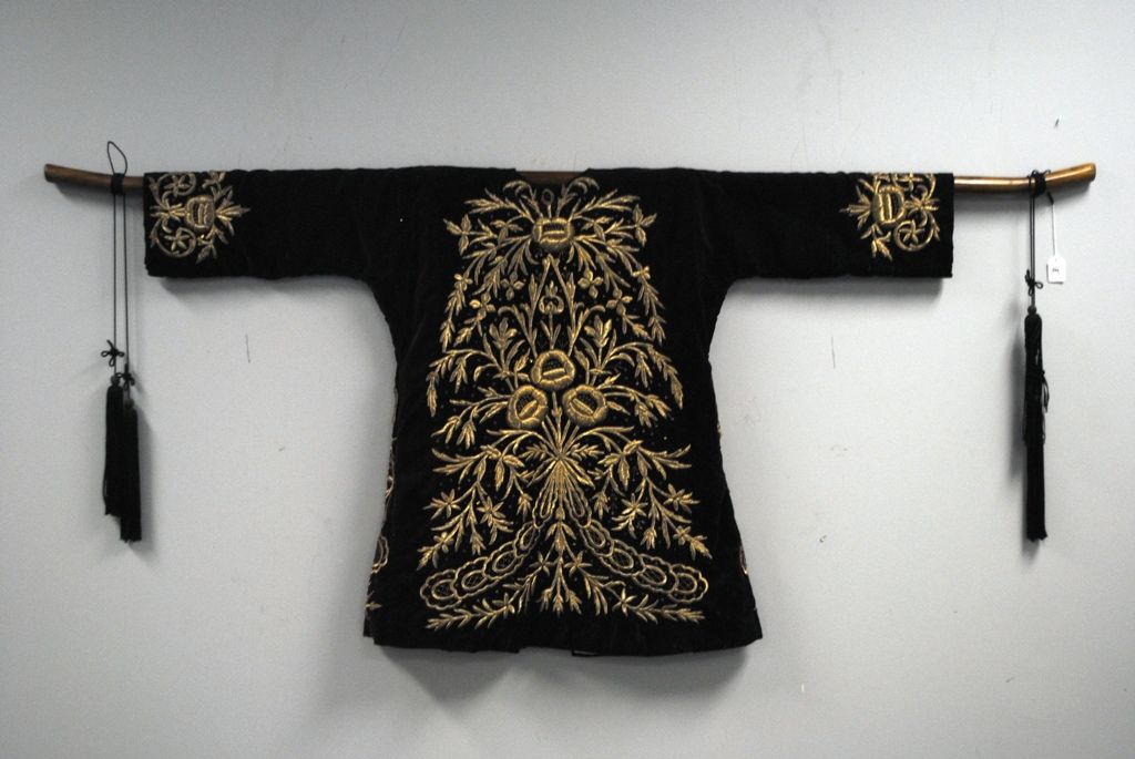 RAJU Mens Ceremonial Jacket with Silk Satin Stitch Puff Work, 40 to 60 years old, excellent condition. Indian/Pakistani. 31 1/2'h 51" cuff to cuff.