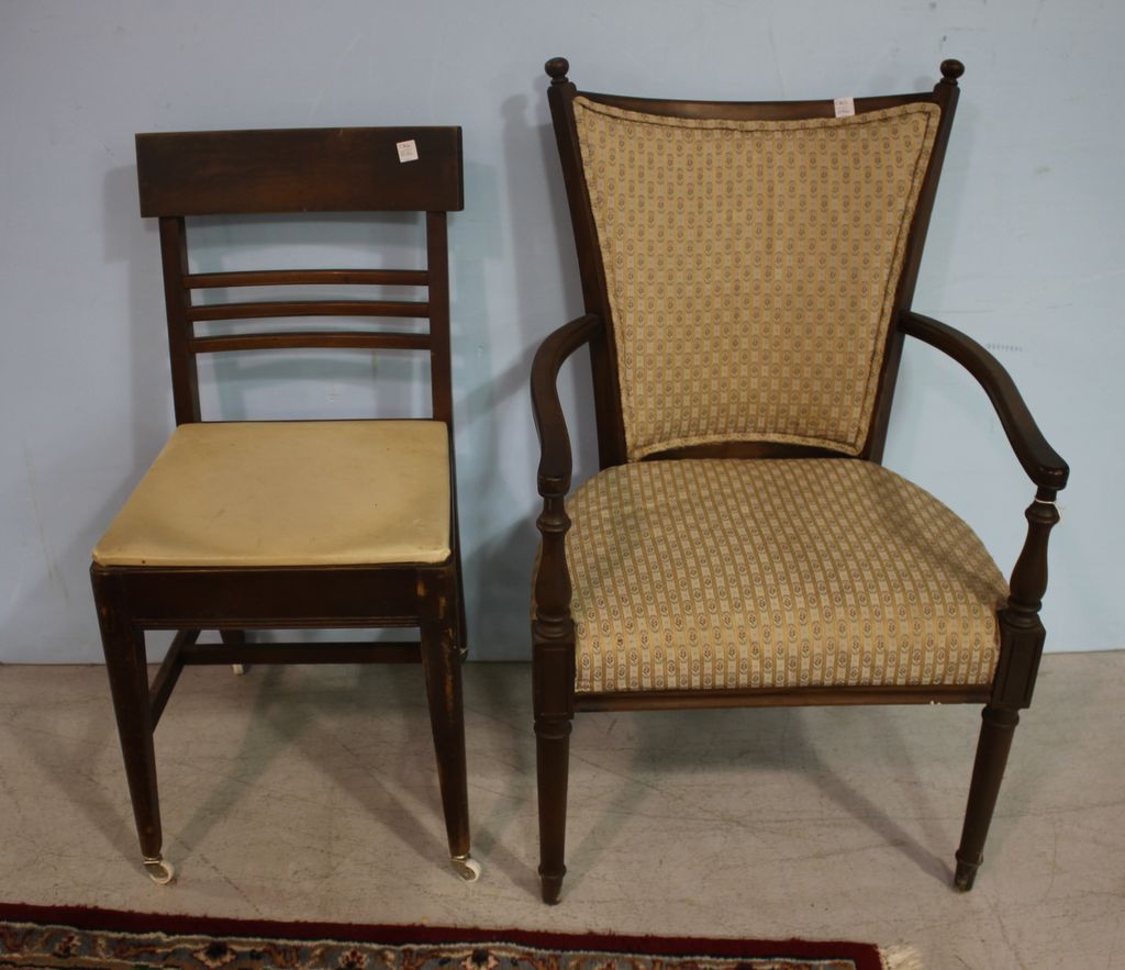 Two Vintage Chairs and One Arm Chairs. Vintage Chairs 22"w, 38"h. Arm Chair 17"w, 34 1/2" h.
