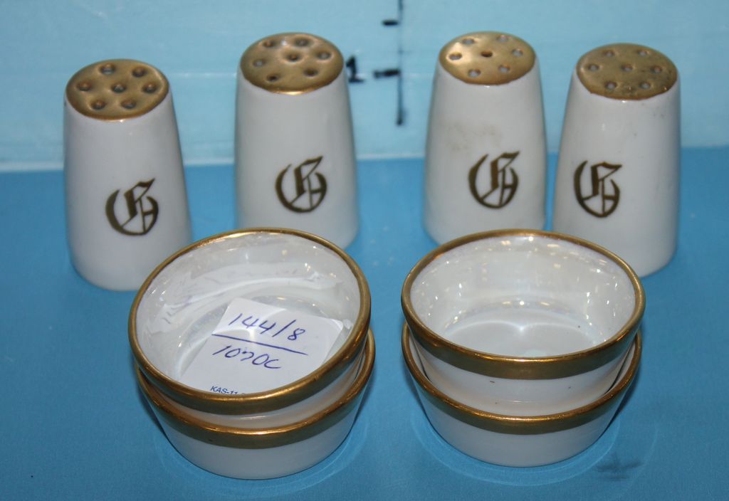 Set of Four Bavarian Salt Cellars and Four Porcelain Shakers