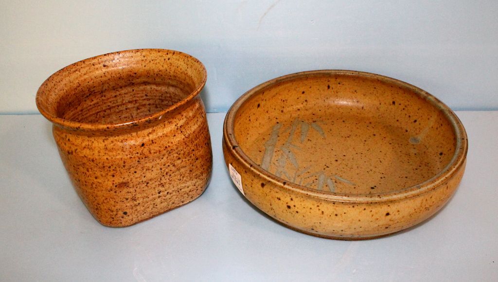 Contemporary pottery vase signed on bottom and signed Springwood pottery bowl; 10" dia. ; vase, 6 1/2" dia., 5 1/2" h.