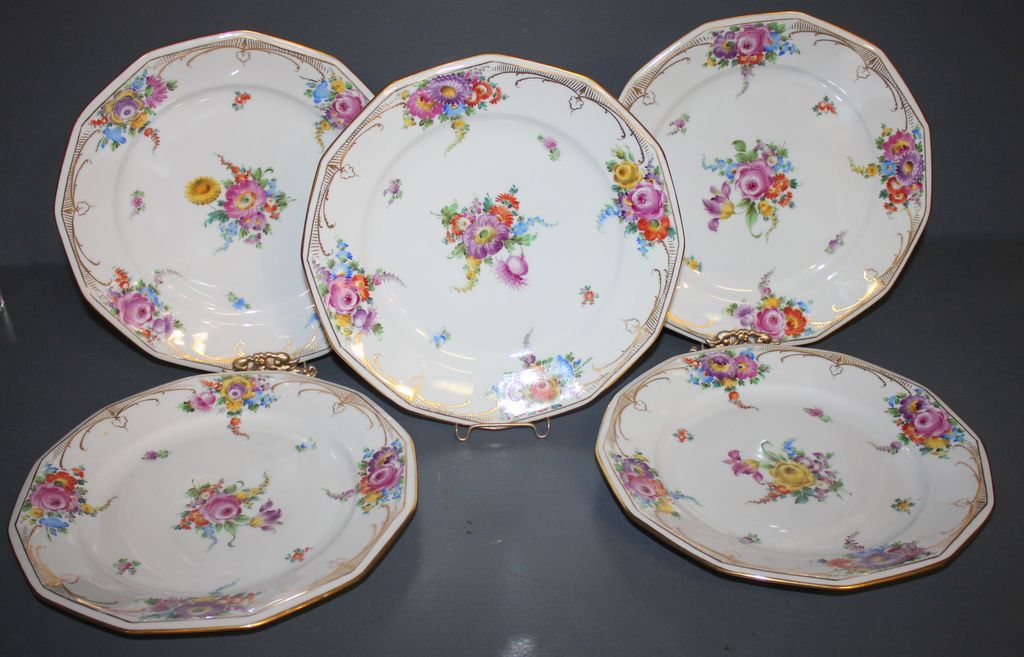 Set of Five Dresden Saxony Hand painted chargers, 11"dia.