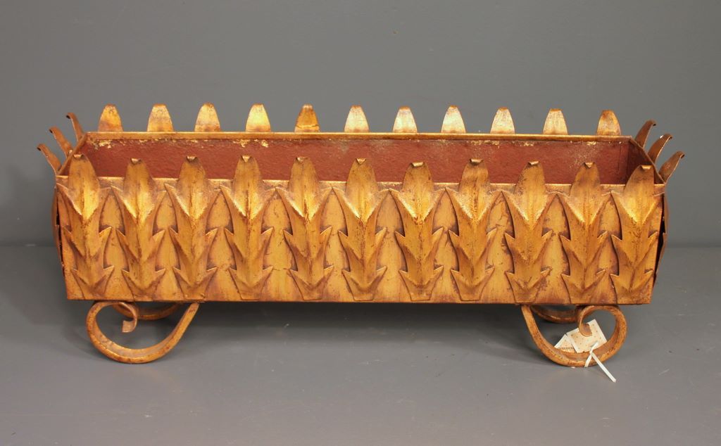Spanish Giet Metal Jardinere, gold painted 27"w x 8"d x 11" h