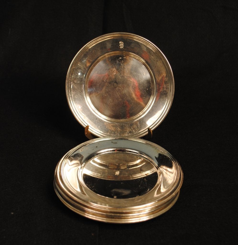 Set of Five International Sterling Plates (monogram B),6 1/4". Set of Five Silverplate Plates. 6 1/4"