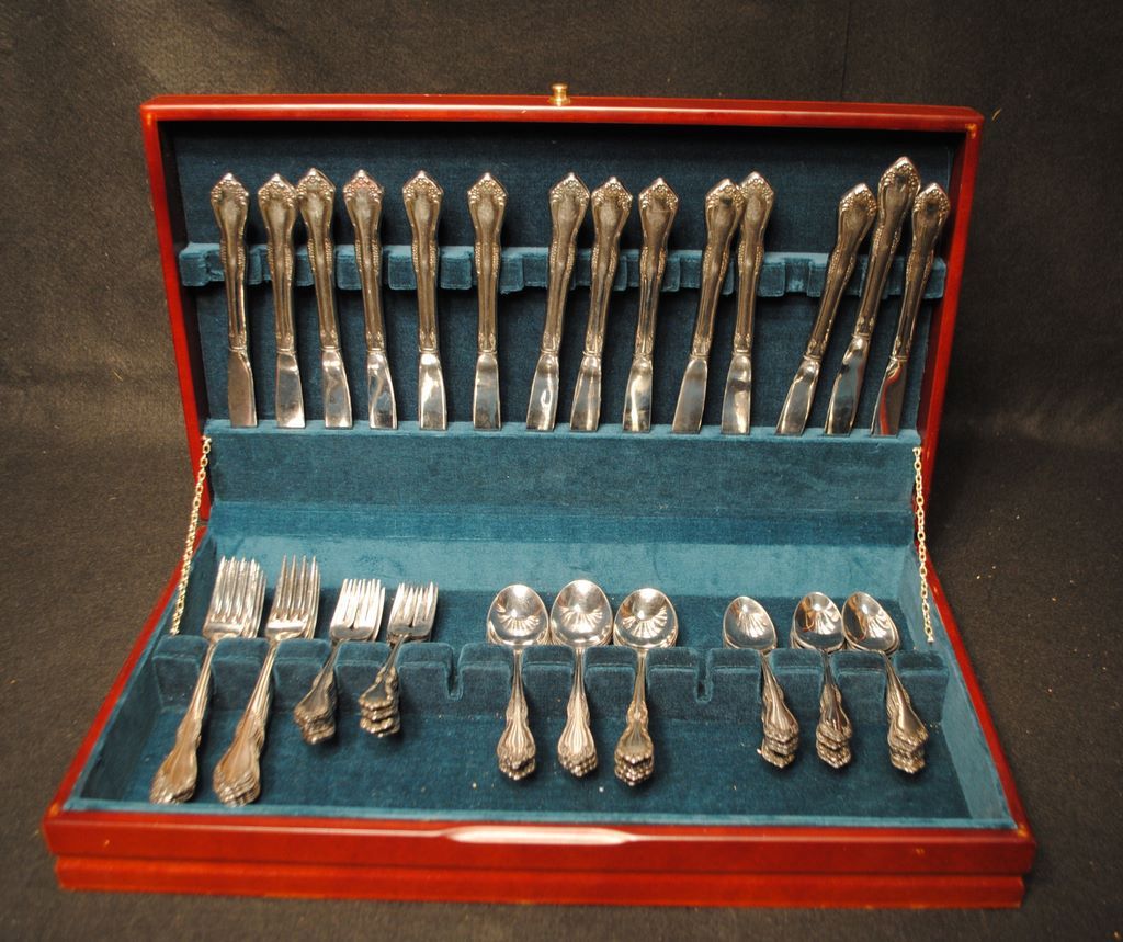 86 piece flatware including 14 knives, 22 teaspoons, 17 salad forks, and 17 dinner forks.