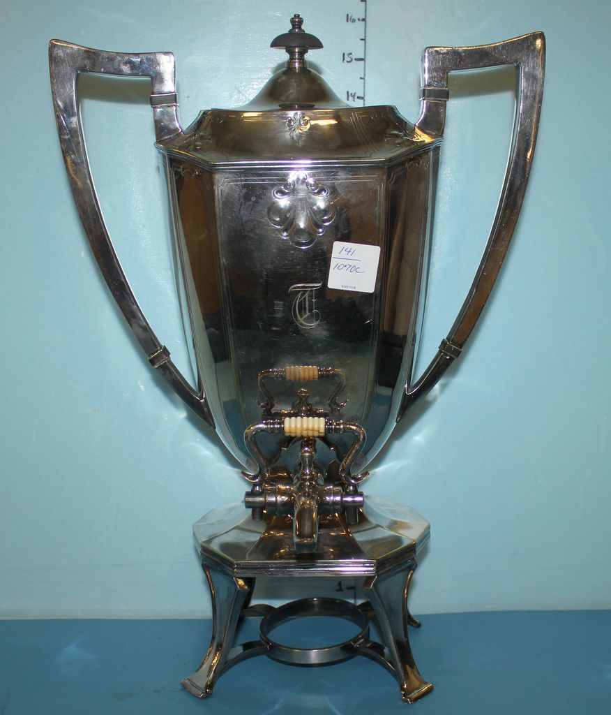 Silverplate Hot Water/Coffee Urn, has monogram, missing burner; 16" h.