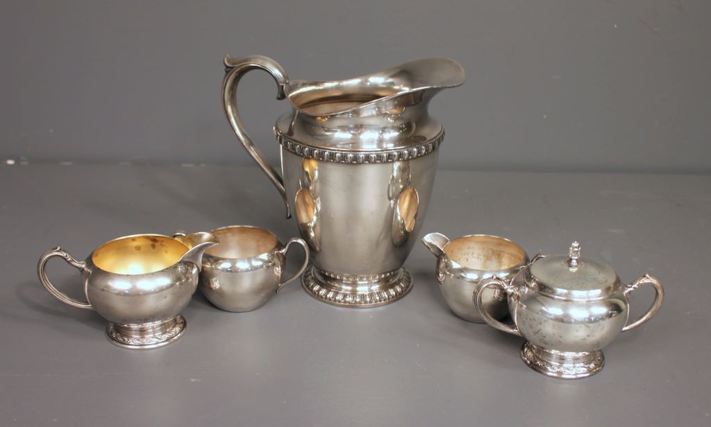 Five Pieces of Silverplate, two creamer and sugars and one water pitcher 8 1/2 "h