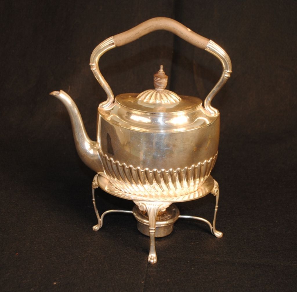 Alpha HB & H Kettle on stand, Silverplate 11 3/8"h
