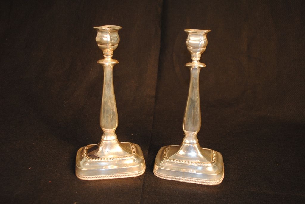 Pair of Weighted Silverplate Candlesticks, 10 1/2" h.