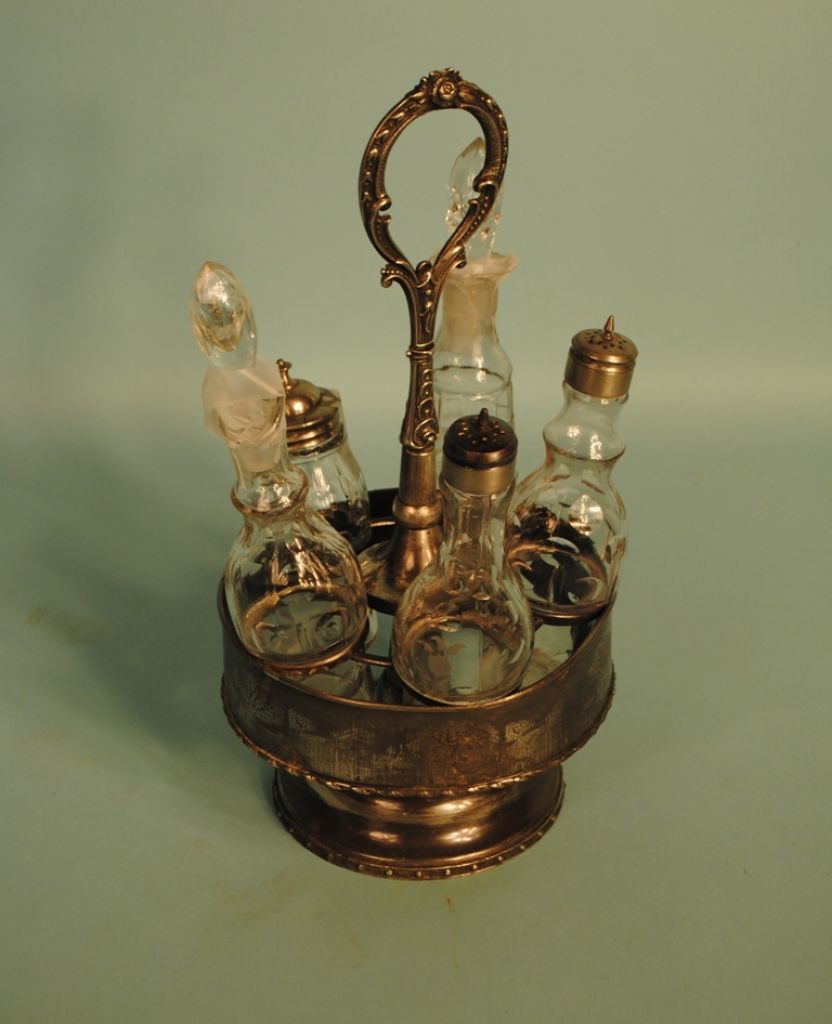 Victorian Silverplate Castor Set with 5 original bottles