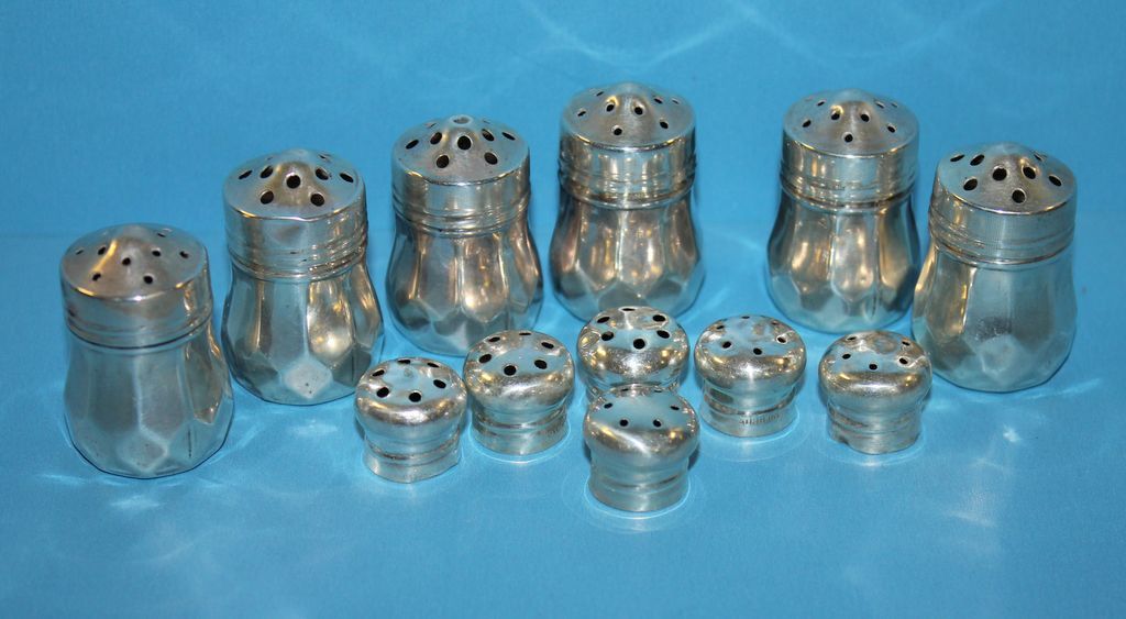 Six Sterling Shakers with lids and Six Sterling Lids.